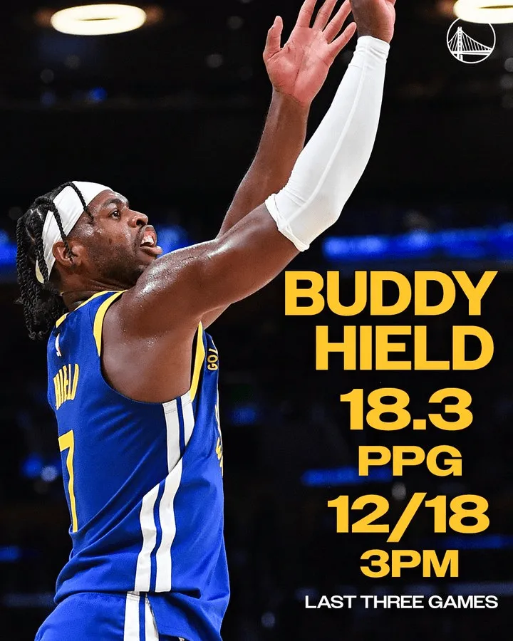 勇士球员巴迪-希尔德近三场比赛场均得到18.3 分,三分球18投12中。